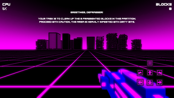 You are Defragger, a system utility deployed by the Task Manager to restore order in a forgotten partition. Navigate block by block, cell by cell, eliminating hostile fragments that corrupt the system and drive your CPU usage toward critical levels. Collect free memory to stabilize performance, but be careful: if CPU usage reaches 100%, the Task Manager will terminate the process and force a restart.