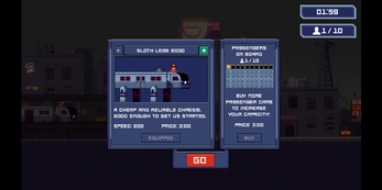 I find the game extremely confusing. First time, it said test #97 failed as soon as it started. It did that again while I was on the menu. Nothing indicates how much "money" you have to know if you can buy another train or car. I have no idea why the car shows an increasing number of passengers in the menu. Once I finally got through a map (unable to reach anything on top of buildings) the second level I had no where to put passengers, the doors never open when i pick them up. Also, confused why the train stops or gets stunned whenever it hits those yellow pillar things. I also found the train to be a bit too close to the left edge of the screen, making it difficult to toss obstacles as my mouse was constantly going outside the canvas and thus releasing the mouse button wouldn't drop the object.